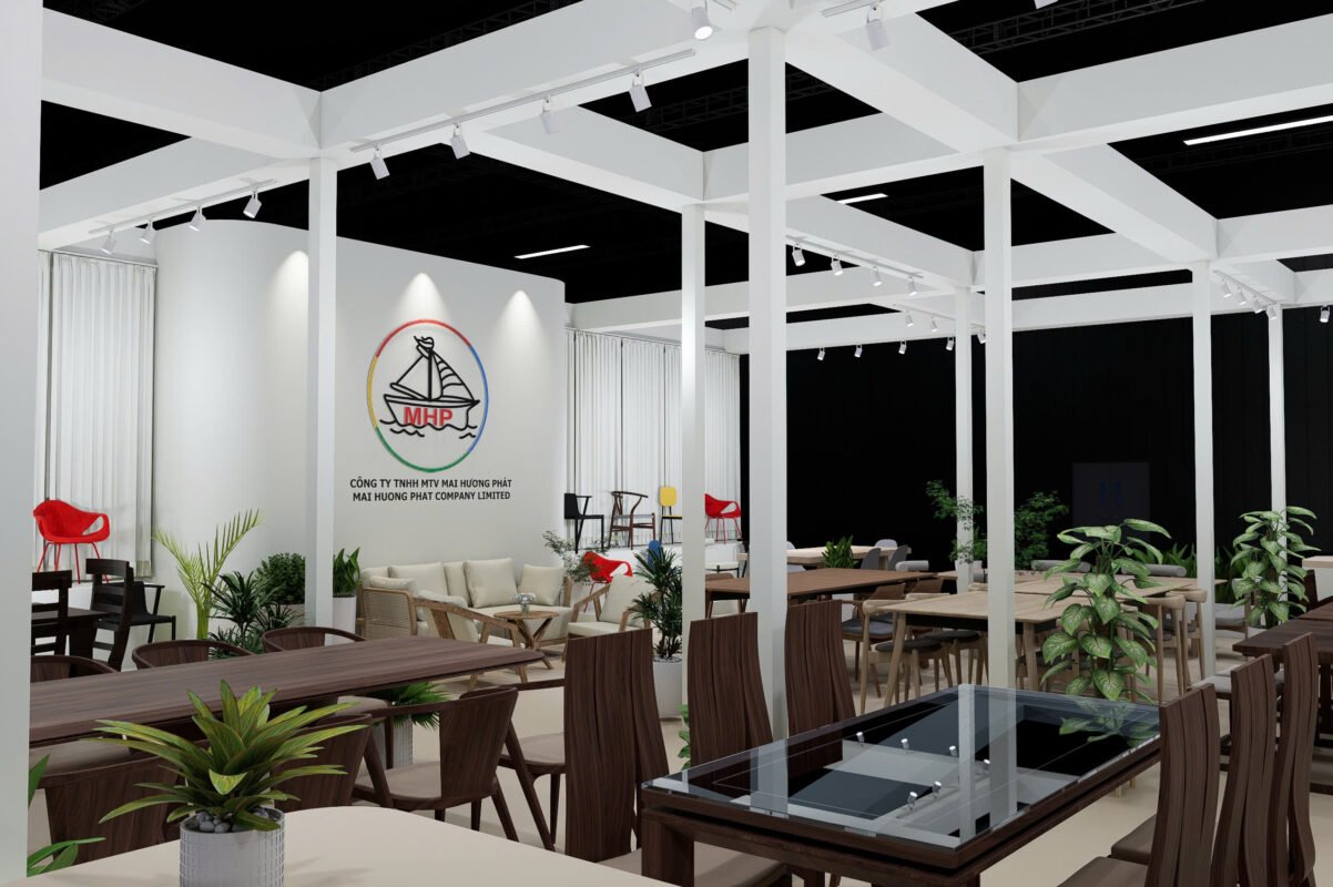 Gian hàng 114 m2 (12mx9,5m) với thiết kế phù hợp để trưng bày nội thất, bàn ghế,… phù hợp cho doanh nghiệp tham gia VIFA, HAWA, VIETNAM WOOD, VIBE,…